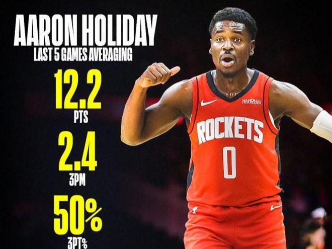 火箭昨天在缺少杜兰特的情况下,还能击败近期状态火热的太阳,有两人立下汗马功劳,首发的阿门和替补的霍乐迪。值得一提的是,霍乐迪不光是这一场比赛表现出色,而是在伊森受伤火箭板凳席缺少得分手之后,他最近5场比赛场均得到12.2分,场均投进2.4个三分,三分命中率50%(24中12),场均正负值+7.4。不得不说,火箭的板凳席真的厚实,霍乐迪之前轮换都进不去,直到最近才打上替补,结果一回来就来之能战,俨然已经成为火箭最急缺最耀眼的射手了。